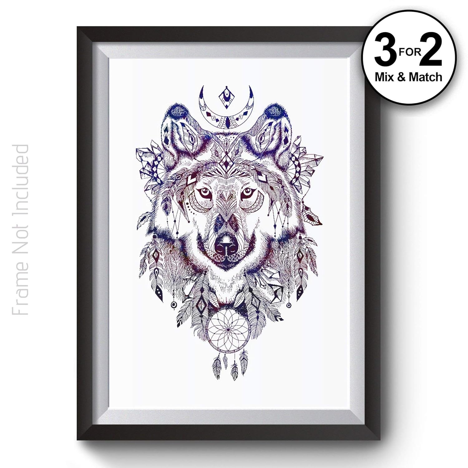 Aztec Wolf Art Print On 100 Cotton Paper Geometric Animal Wall