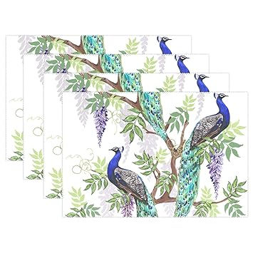 Amazon Com Animal Peacock Flower Home Plate Mat Table Mats Set Of