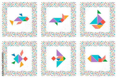Tangram Set Sea Animals Fishes Sailboat Collection Of