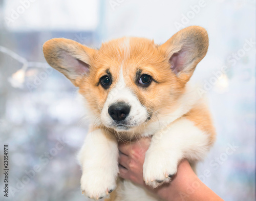 Portrait Of A Cute Puppy Corgi With Frightened Eyes And Big Ears
