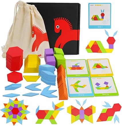 Amazon Com Wood City 130 Pcs Wooden Pattern Blocks Set Geometric