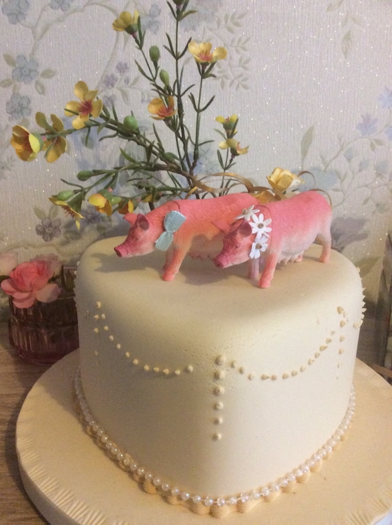 Set Of 2 Pig Cake Toppers Animal Wedding Cake Toppers Animal Etsy