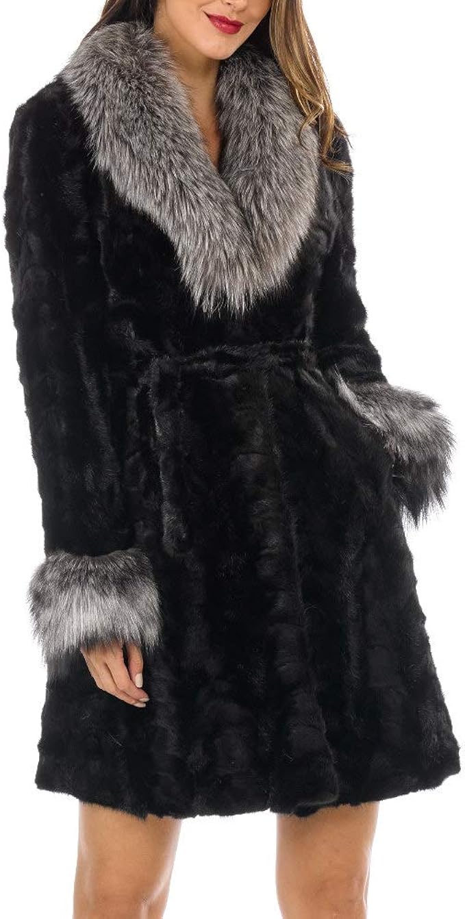 Real Sculptured Fur Coat Mink Fur With Silver Fox Fur Collar At