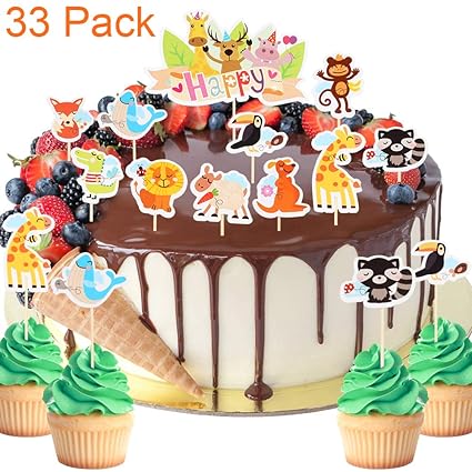 Amazon Com 33 Pack Zoo Of Cute Animal Themed Cupcake Toppers For